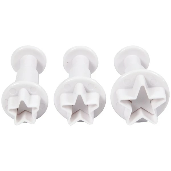 Découvrez ces 3 emporte-pièces à poussoir Étoile qui vous permettront de décorer vos gâteaux, cupcakes et pièces montées en un tour de main. En effet cet ensemble de 3 découpoirs éjecteurs permet de découper dans toutes les pâtes (pâte à sucre, pâte d’amande