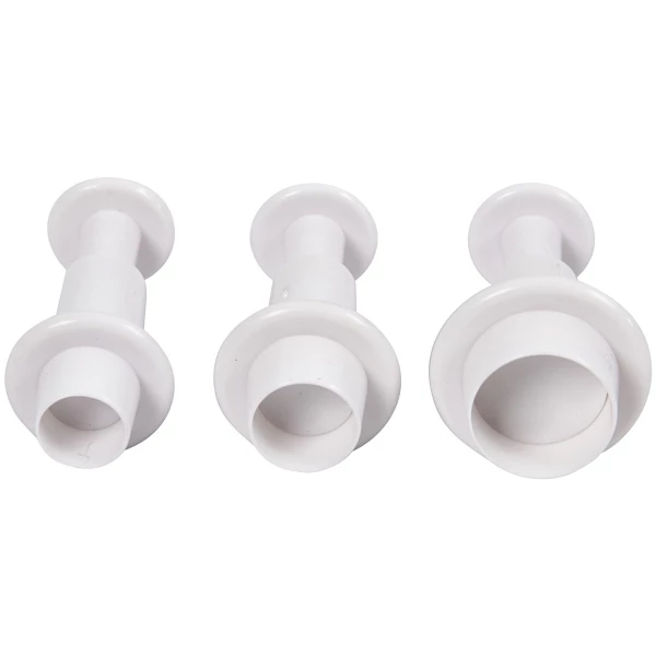 Découvrez ces 3 emporte-pièces à poussoir Rond qui vous permettront de décorer vos gâteaux, cupcakes et pièces montées en un tour de main. En effet cet ensemble de 3 découpoirs éjecteurs permet de découper dans toutes les pâtes (pâte à sucre, pâte d’amande