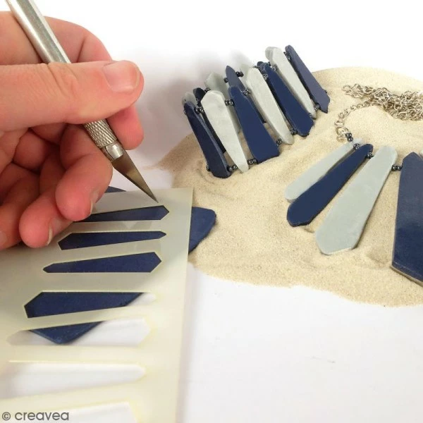 – Placez le pochoir sur de la pâte polymère aplatie (expâte Fimo).