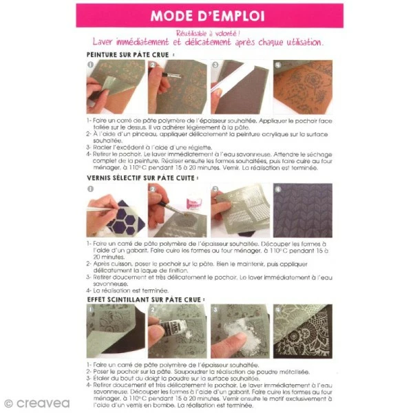 Pochoir idéal pour apporter un bel effet 3D et/ou peindre sur de la pâte polymère :