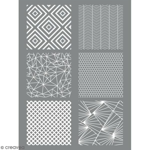 Description de Pochoir pour impression de motifs sur pâte polymère – Géométrique – 11,4 x 15,3 cm