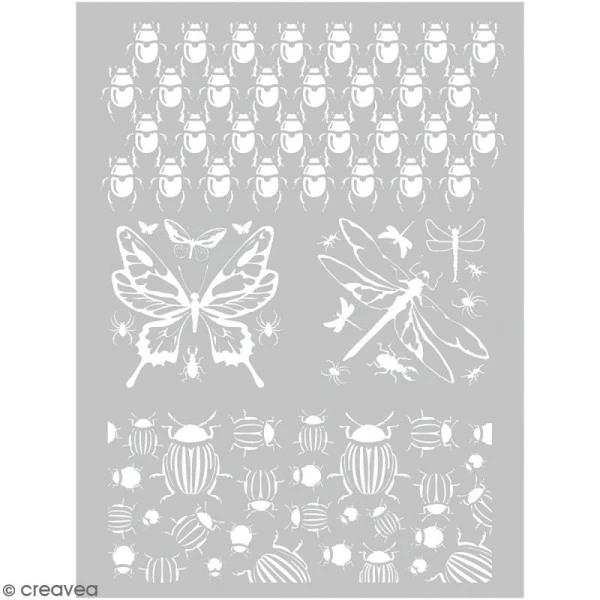 Données techniques pour Pochoir pour impression de motifs sur pâte polymère – Insectes – 11,4 x 15,3 cm