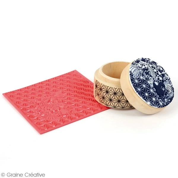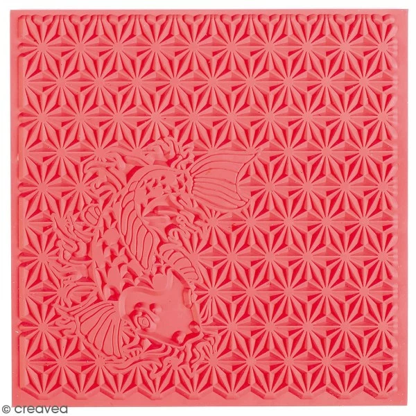 Le principe de cette plaque de texture en caoutchouc souple est simple : il suffit par pression de transférer le motif Japonisant sur la pâte Fimo avant de la faire cuire pour garder l’effet relief ! Vous pourrez ainsi créer des bijoux texturés mais aussi des accessoires déco totalement uniques aux motifs de carpe Koï et sashiko.